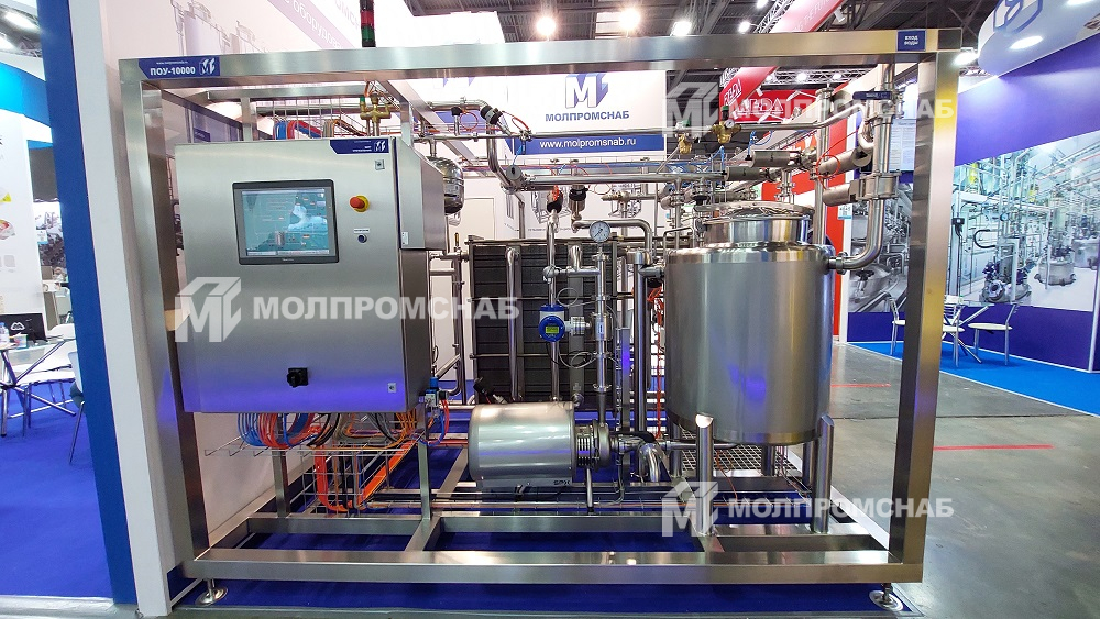 На стенде представлена пастеризационно-охладительная ПОУ-10 000 для производства сыра.