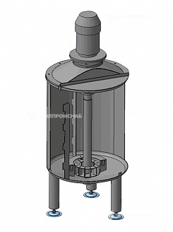 Турбомиксер представляет собой одностенную закрытую емкость с коническим дном. В нижней части емкости находится четырехлопастной разделитель потока, внутри которого вращается диск турбины. К внутренней части корпуса диспергатора приварены три лопастных пластинчатых турболизатора (завихрители потока), которые в процессе работы аппарата не дают образоваться жидкостной воронке.