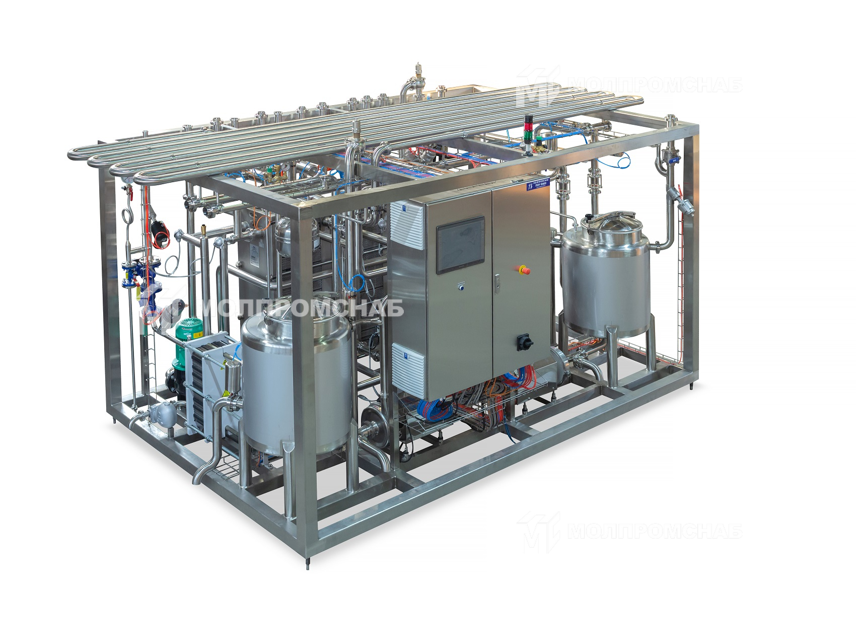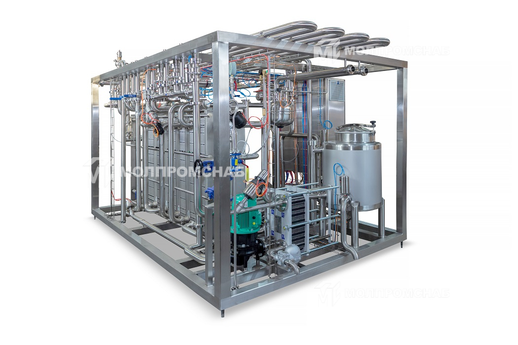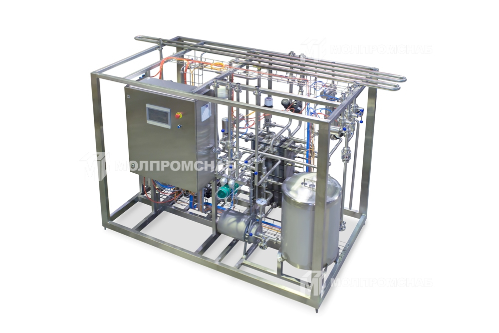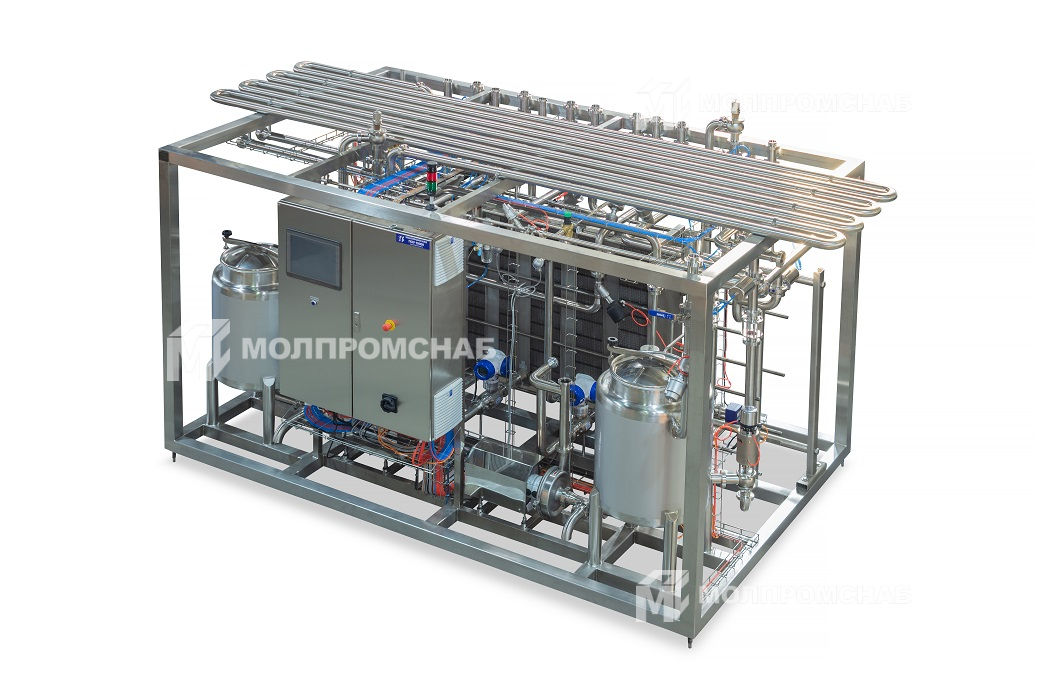 Установка предназначена для пастеризации и охлаждения молока для получения питьевого молока и других молочных продуктов. Также предусмотрена гомогенизация, сепарирование и очистка молока в потоке.