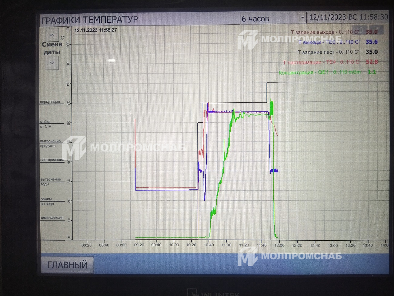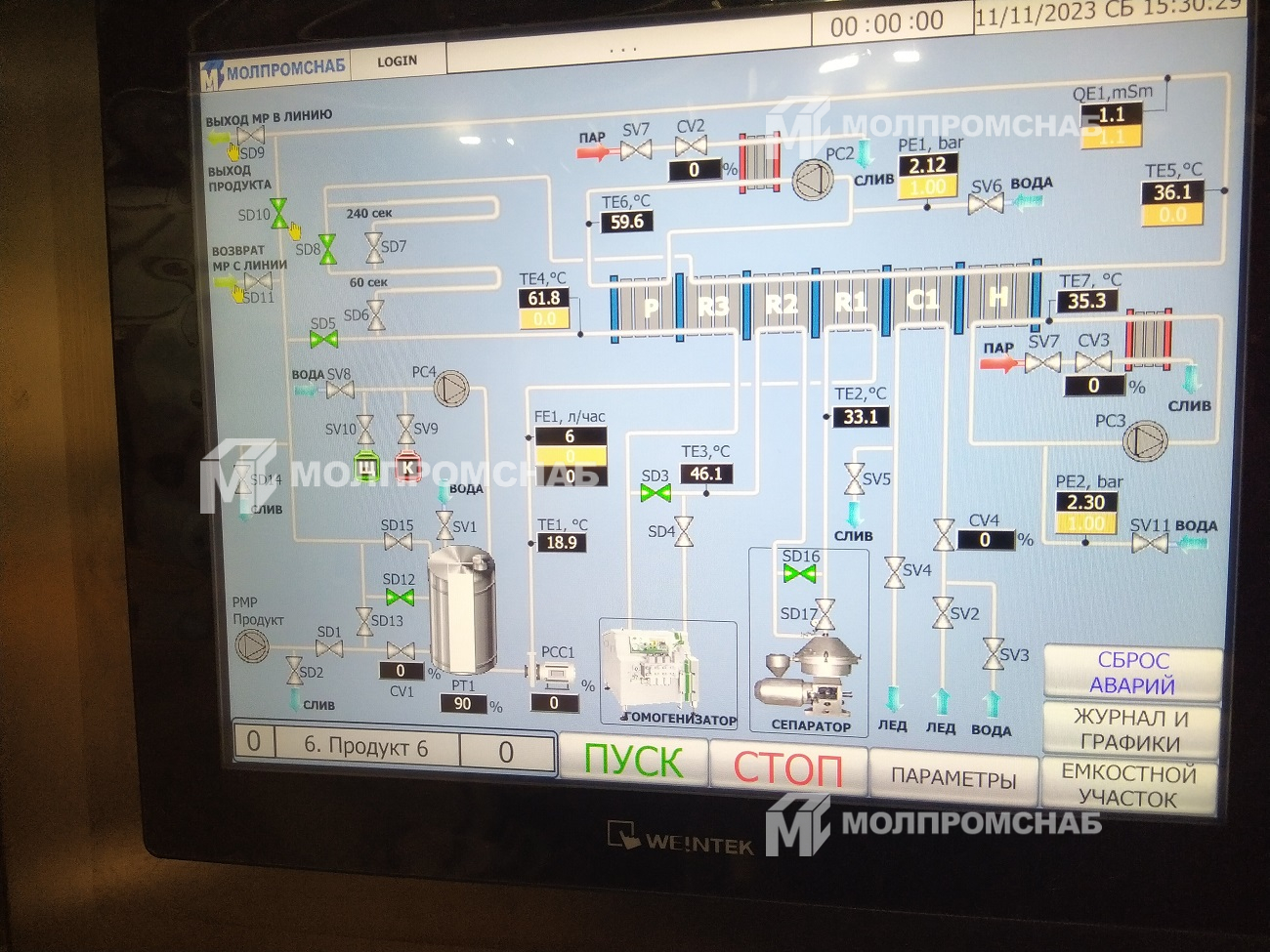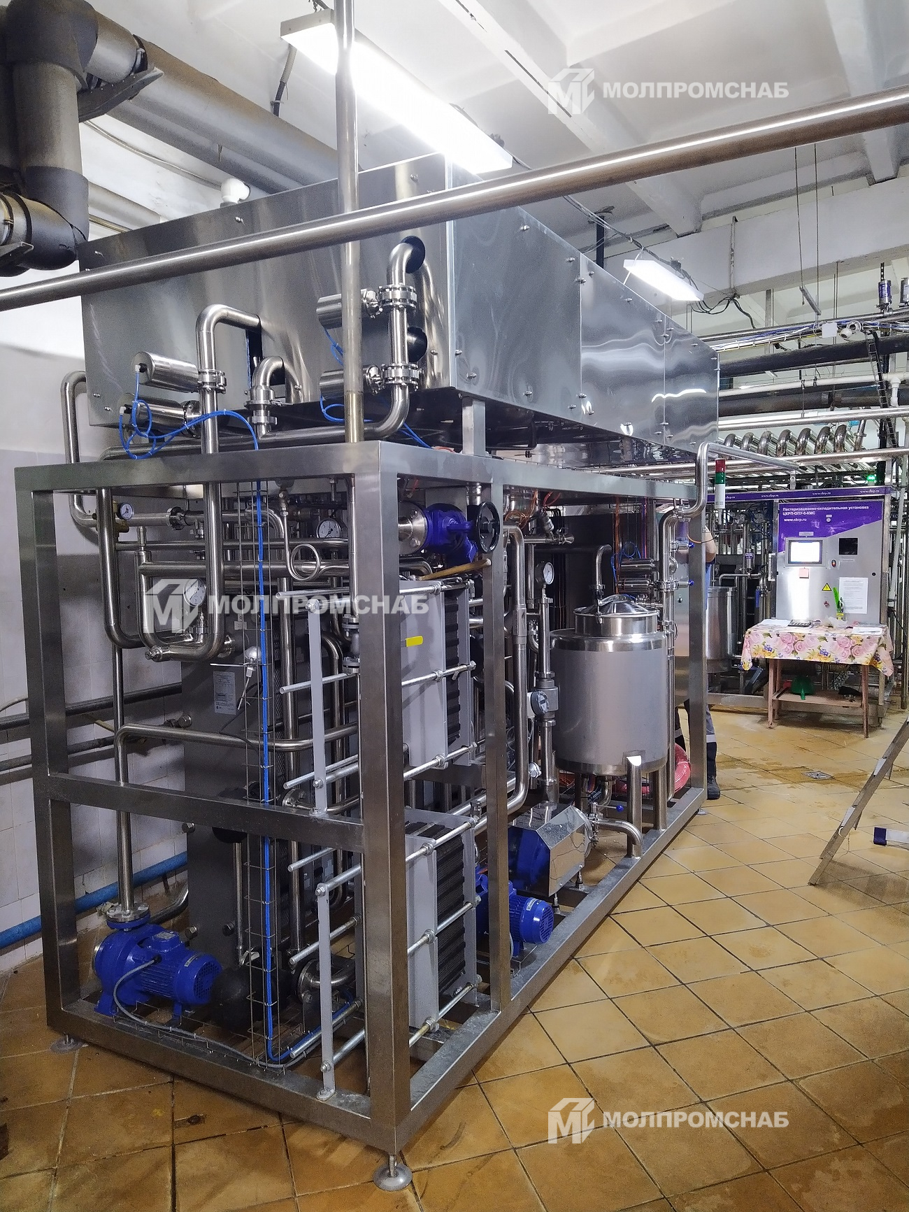 Изготовлена пастеризационно-охладительная установка для молока с горячим выходом от 30 до 95 С для дальнейшего получения топленого молока, ряженки и других молочных продуктов.