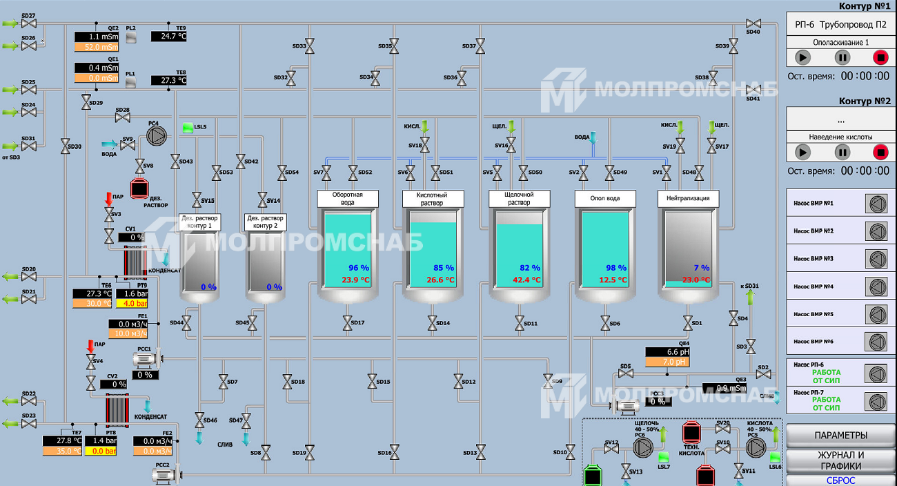Реализован автоматический режим мойки емкостей самой CIP-станции.