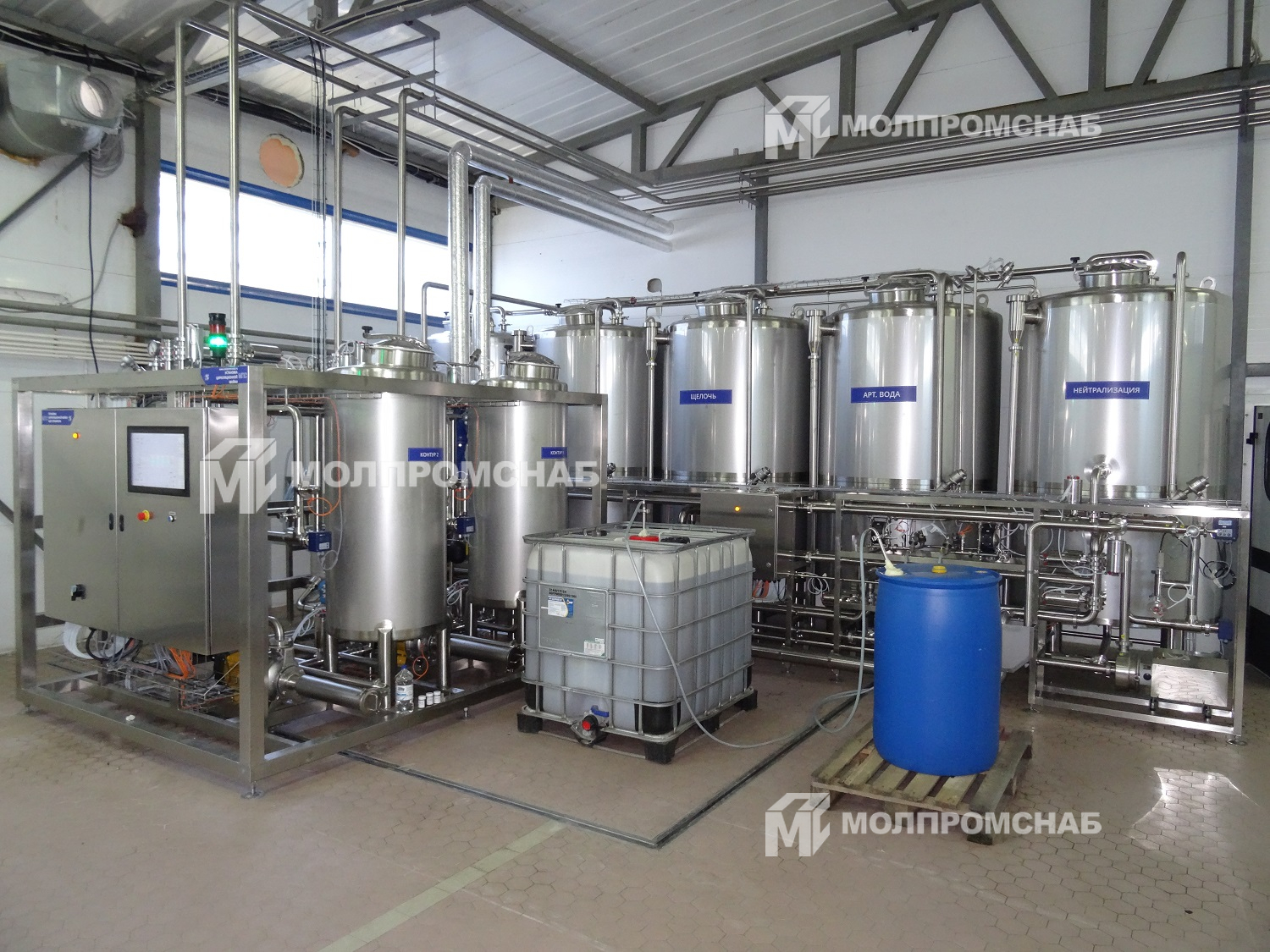 На пищевое предприятие была изготовлена и установлена 2-х контурная 5-ти емкостная CIP-станция для автоматизированной мойки технологического оборудования. Предусмотрены емкости для ополаскивающей артезианской воды, для моющих растворов и оборотной воды. Также имеется емкость для нейтрализации и два буферных бака для холодной дезинфекции. Слив в канализацию всех ополосков осуществляется с нейтральным показателем ph 7+/-0,5