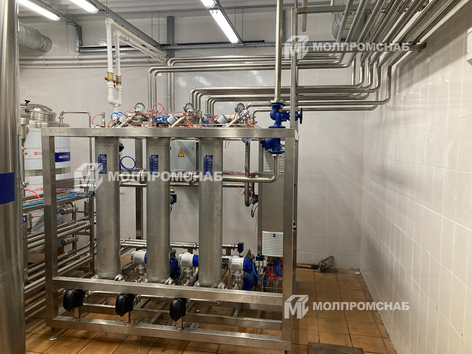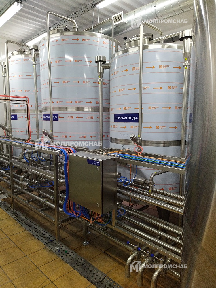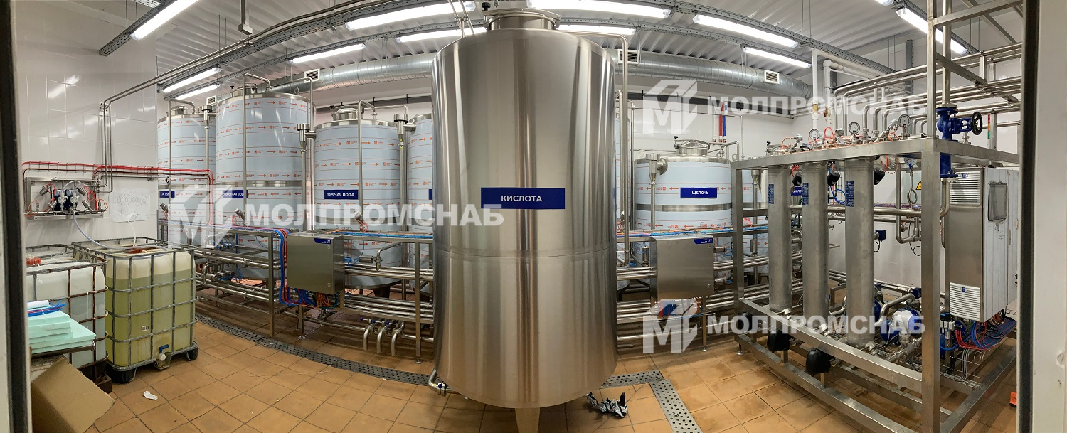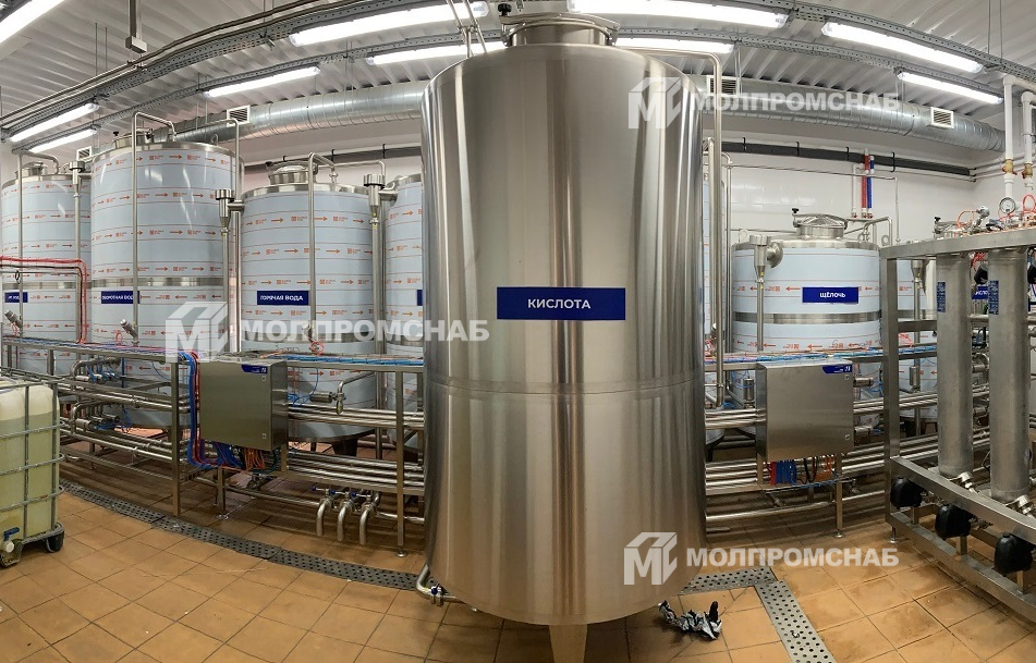 На молочный комбинат была изготовлена комбинированная установка CIP-мойки, состоящая из 8 емкостей и модуля подачи и возврата растворов на 3 контура