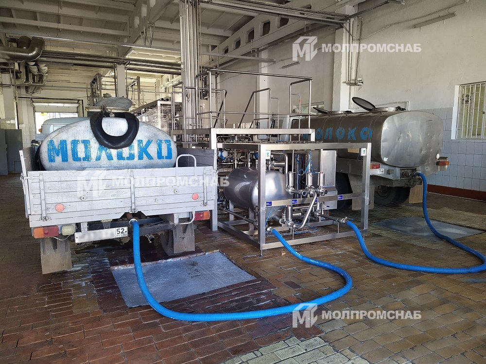 Установка приемки молока осуществляет точное измерение объема принимаемого молока с помощью электромагнитного расходомера и перерасчёта полученного объема на вес.